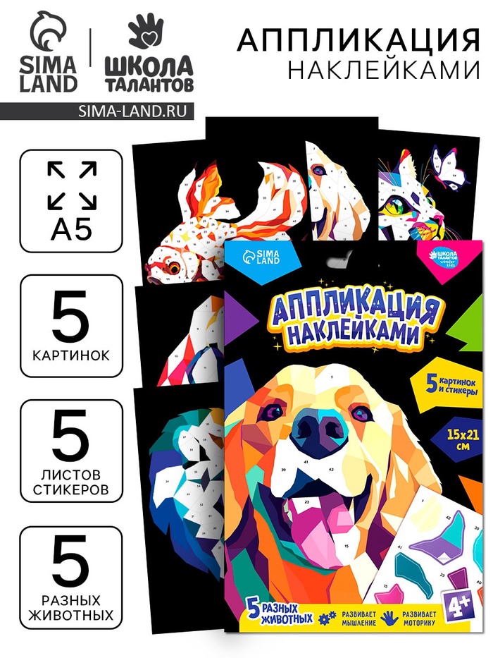 Этот набор позволяет создавать яркие и выразительные изображения животных с помощью наклеек.