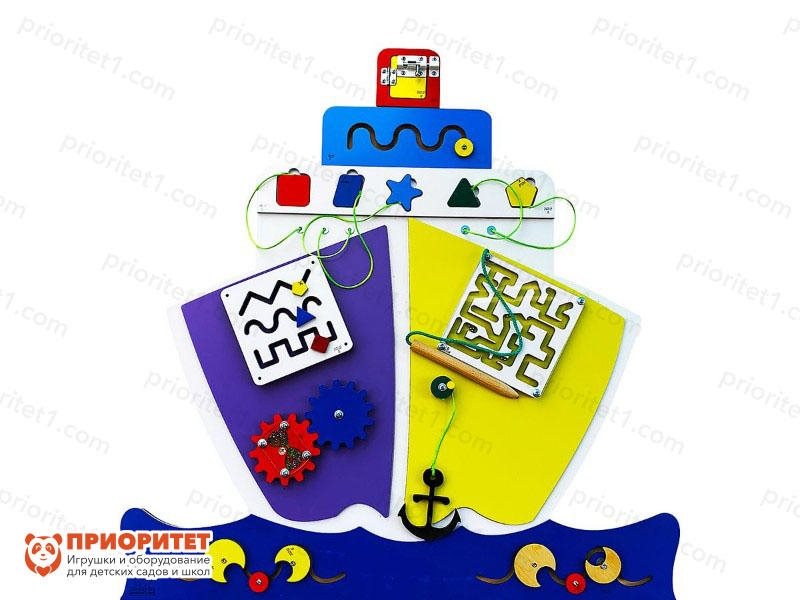 Бизиборд – вариант для детей, которые хотят развиваться самостоятельно или при помощи педагога. Игрушка развивает мозг и позволяет ребёнку развивать кисти рук. Бизиборд с ледоколом понравится мальчикам дошкольного возраста, потому что мальчики увлекаются техникой. Конечно, такой набор может подойти и девочке. Задача ребёнка – прикасаться к мелким деталям на панели и стараться понять их принцип. Они вращаются и крутятся, переворачиваются и двигаются. Всё это привлекает внимание ребёнка.