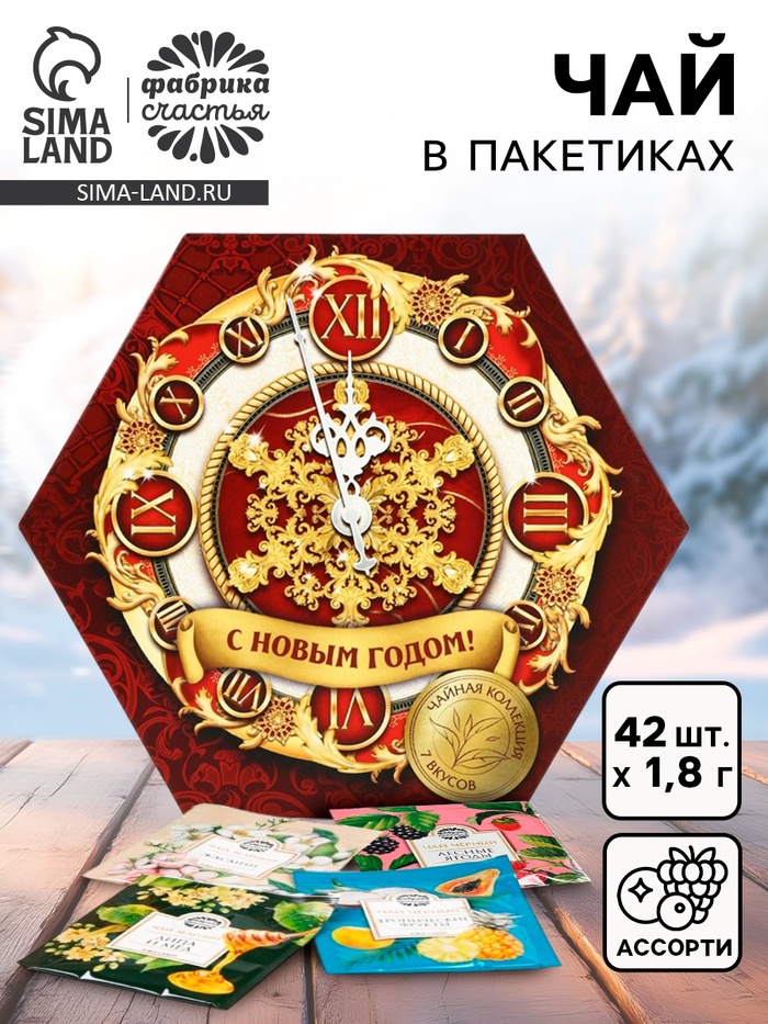 Чай подарочный «Новогодние часы» ассорти, 75.6 г (42 пакетика × 1.8 г)