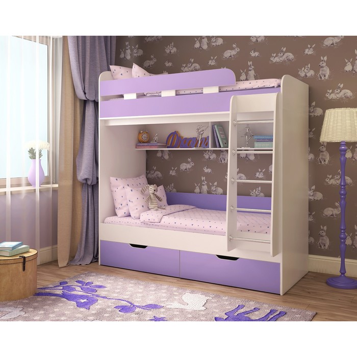 Детская двухъярусная кровать Юниор-5 белое дерево/ирис в Чите