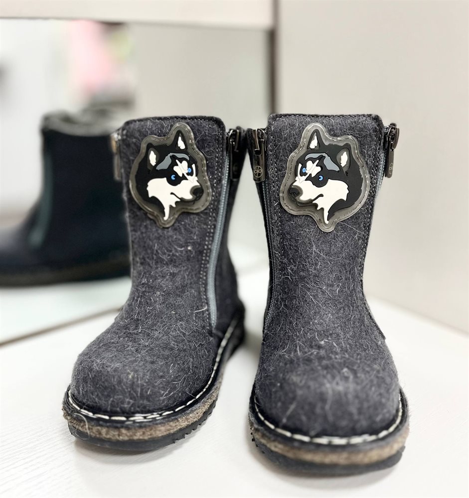 Детские унтоваленки для мальчиков, хаски, серые, размер 23, ФОМА, Россия (23710) LZ