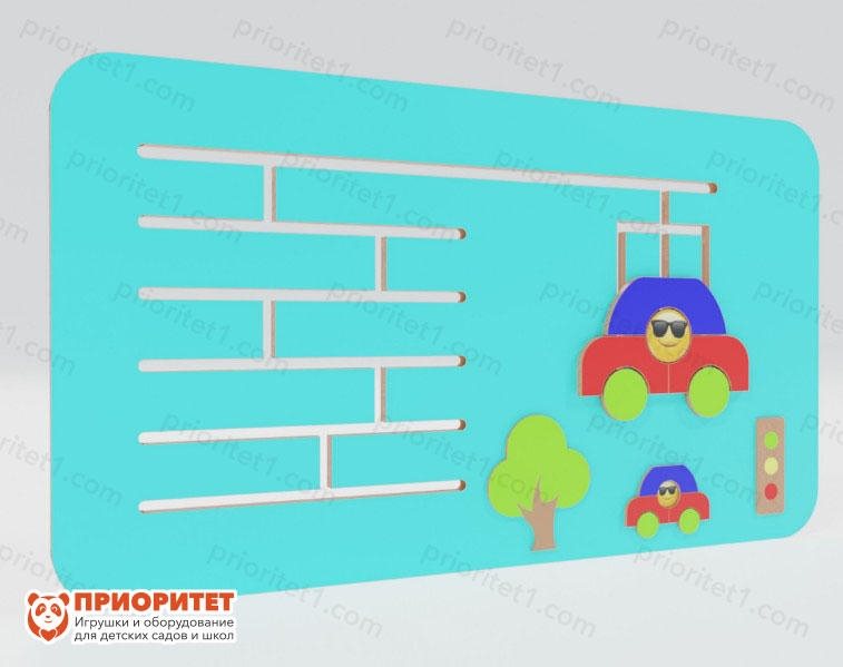 Помимо лабиринта и деталей машинки, которые скользят по дорожкам, на панели имеются тактильные элементы: