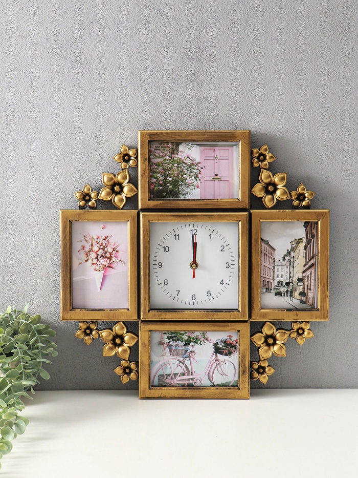 Фоторамка часы выполнена из качественного пластика, что обеспечивает устойчивость к механическим повреждениям. Благодаря оригинальному дизайну и гармоничному объединению рамок между собой, коллаж станет стильным дополнением вашего интерьера.