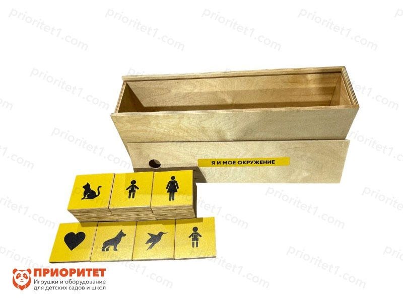 - «Я и мое окружение» — базовое познание, необходимое каждому человеку. Набор рекомендуется малышам от 2 лет, но допустимо использовать и с ребятами 10+, включая детей с особенностями развития.