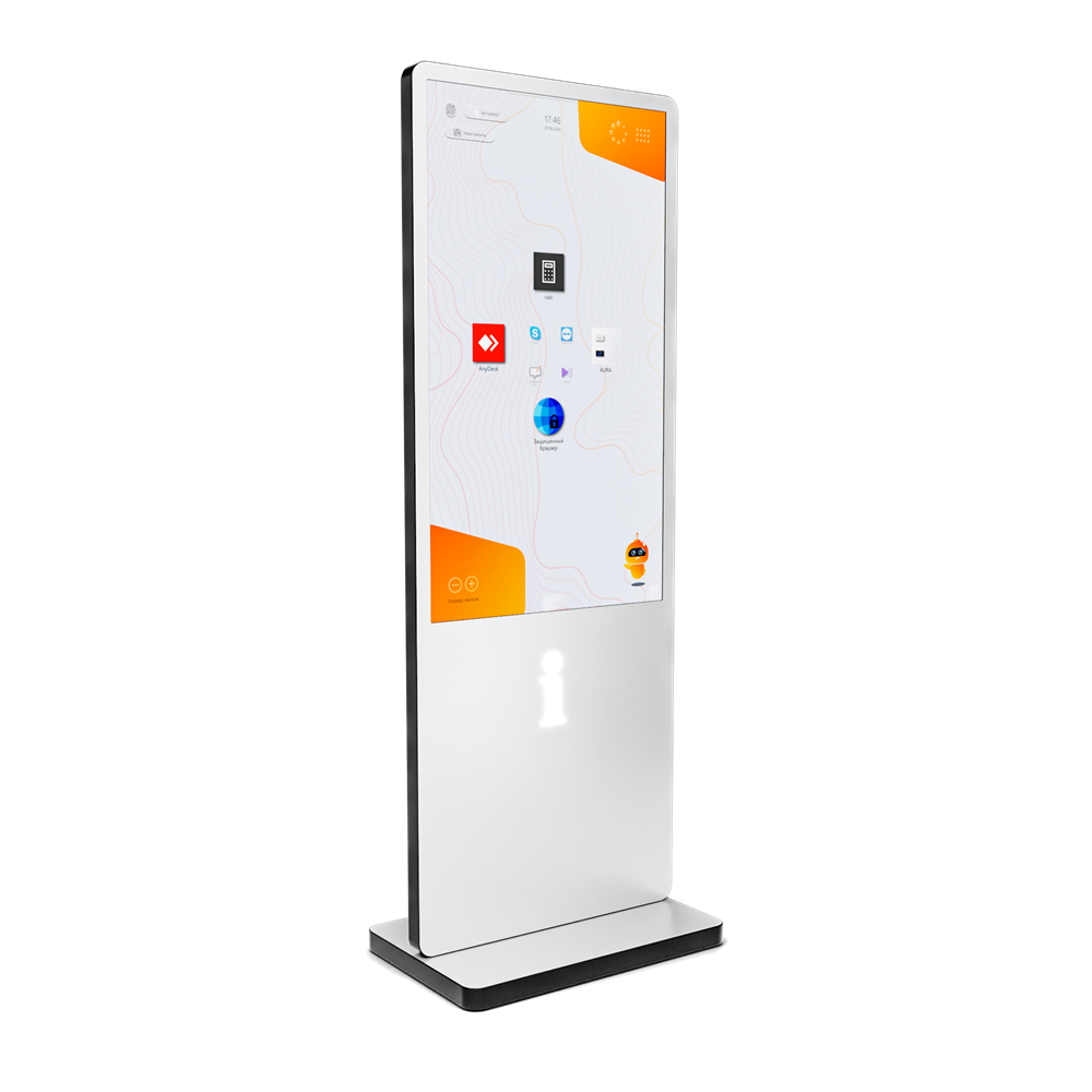 Интерактивный сенсорный киоск в классическом форм-факторе: стальной антивандальный корпус, стильный минималистичный дизайн, дисплей, ИК-рамка которого поддерживает до 10 одновременных касаний. К BlackGlass+ можно подключить любое дополнительное оборудование – от видеокамеры до считывателя QR-кодов.