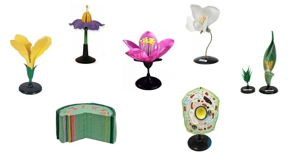 Объемные модели для уроков ботаники выполнены из пластмассы. Корпус стоит на подставке. Все изделия промаркированы, сопровождаются паспортами. Служат наглядным пособием по теме структуры растений. Увеличенные образцы можно рассмотреть с разных сторон, изучить составляющие.