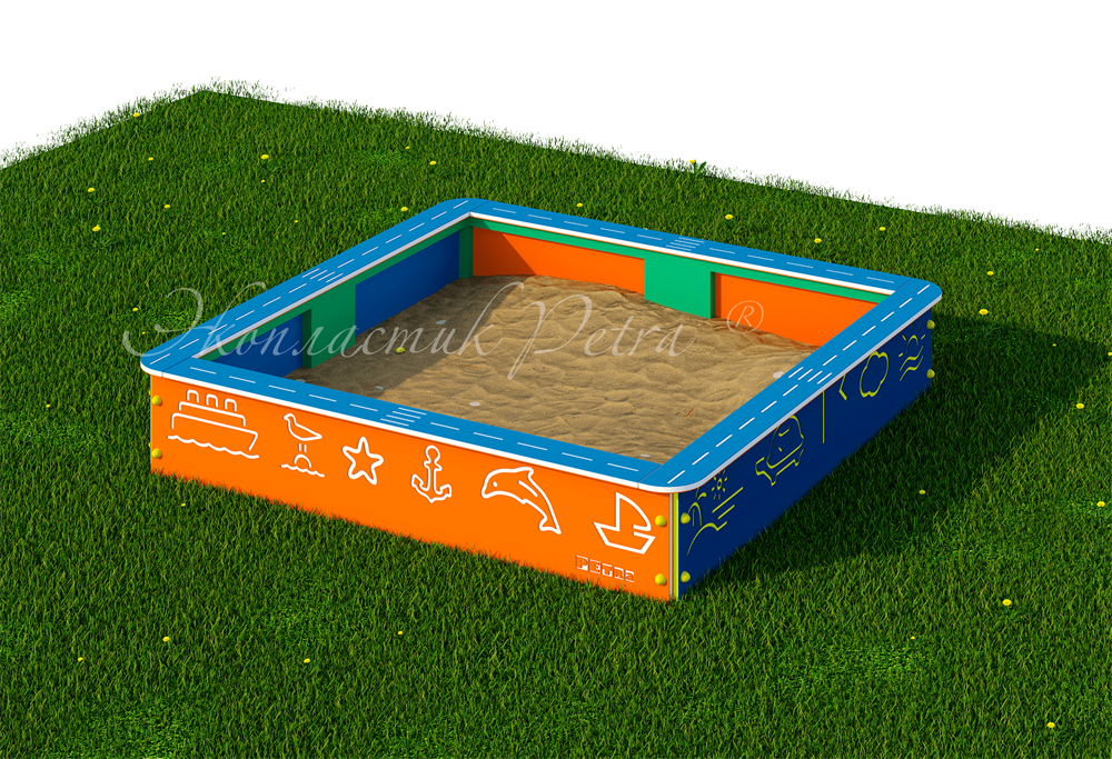 Песочница выполнена из толстого листа цельнолитого атмосферостойкого экопластика с эффектом кожи (толщина 15-20 мм), который имеет неоспоримое преимущество перед фанерой и металлом. Все красочные рисунки на изделиях нанесены гравировкой, поэтому их невозможно стереть.