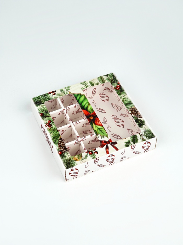 Коробка под 8 конфет и шоколад, с окном «Новогодние подарки», 17.7×17.8×3.8 см
