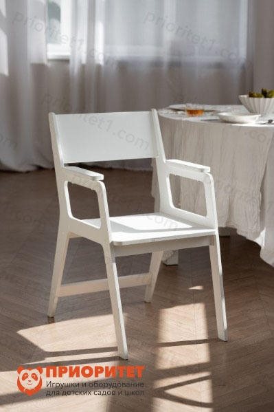 Кресло станет важным элементом домашнего интерьера. Оно отличается простой и удобной конструкцией. Каркас со спинкой усилен для большей прочности. Модель с подлокотниками обеспечит дополнительный комфорт. Кресло покрыто белой эмалью в несколько слоев.