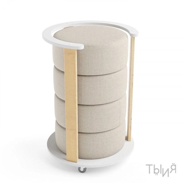 Краткое описаниеУдобные мягкие подушки для сидения и мобильная стойка для их компактного хранения.