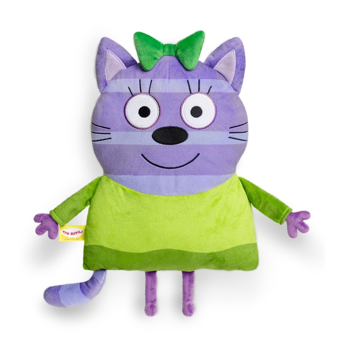 - Игрушка выполнена в виде Горчицы, известной своей вредностью и редкой, но щедростью, из популярного мультфильма «Три кота».