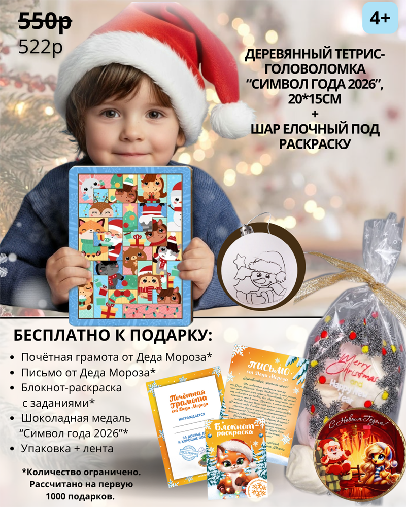Набор №12. Деревянный тетрис + Шар раскраска 4+ (с подарком) в Чите
