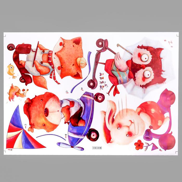 Наклейка пластик интерьерная цветная "Зверята и транспорт" 60х85 см