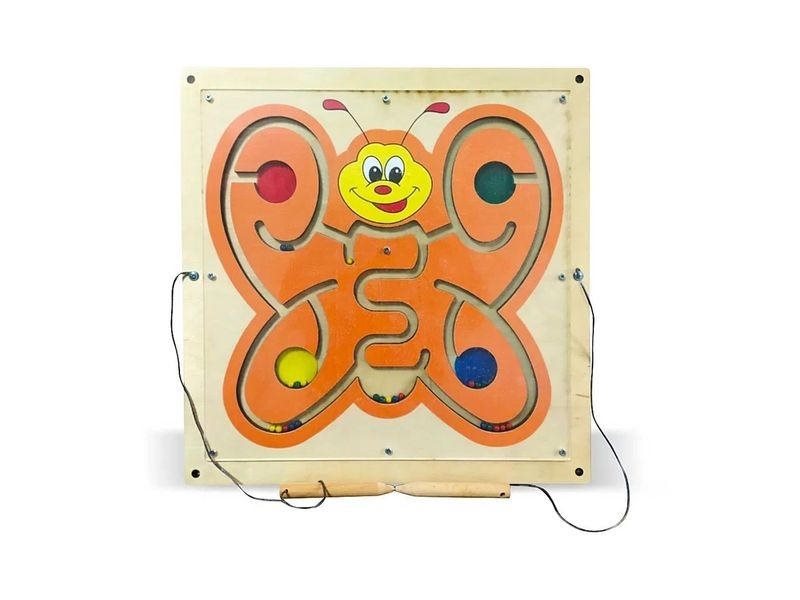 Панель игры крепится к стене при помощи сквозных отверстий на поверхности панели. Игра интересна тем, что предлагает необычный подход к свойствам магнита: специальной ручкой с магнитным концом нужно перемещать по лабиринту металлические шарики. Детям это занятие принесёт массу положительных эмоций, их повеселит забавное изображение бабочки и необычные свойства магнита. Используется в детских садах и начальной школе. Предназначена для детей от 2 лет.