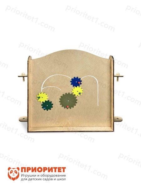 Панель «Шестеренки в лабиринте» станет одной из самых любимых. Вместо готового механизма ребенок может проявить фантазию и собрать свой вариант, комбинируя шестеренки, перемещая их по лабиринту.