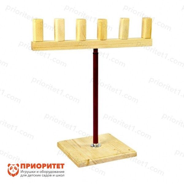 - Разместите на стойке кегли или другие предметы в качестве мишеней. Устройте между детьми соревнование: кто больше мишеней собьет мячиком. Дети научатся координировать свои движения, у них разовьется пространственное мышление, укрепятся мышцы, усилится тактильное восприятие.