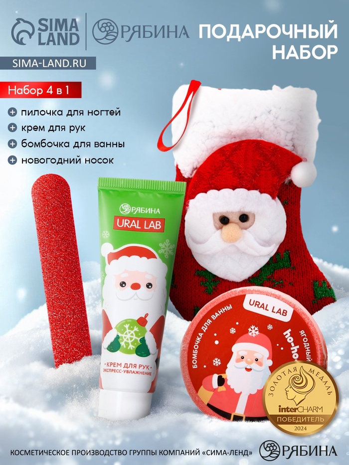 Подарочный набор в новогоднем носке «Дед Мороз», крем для рук, бомбочка для ванны и пилка для ногтей, URAL LAB