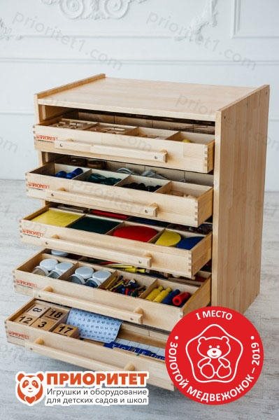 - Удобная система хранения в мобильном стеллаже. Несмотря на большое количество дидактических игрушек, каждая из них имеет свое место. Легко найти нужную.