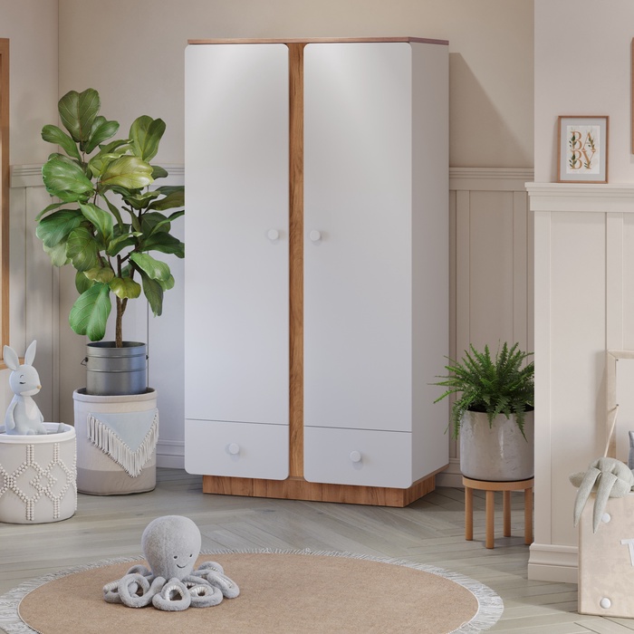 Шкаф двухсекционный Polini kids Ameli 4010, с ящиками, белый-дуб крафт золотой в Чите