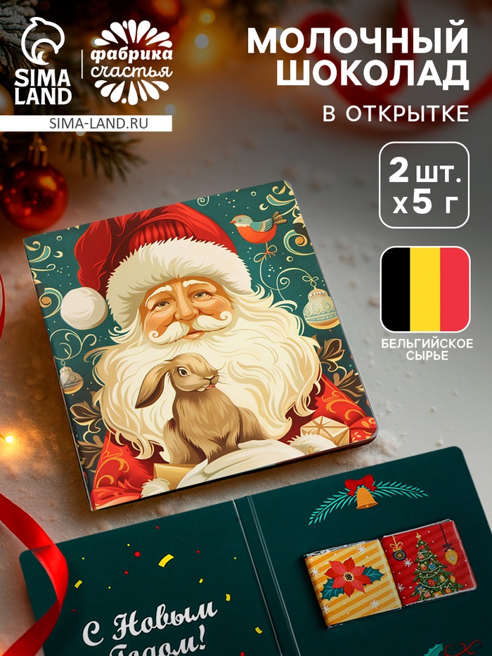 Подарите шоколадную открытку "С Новым Годом! Дед Мороз и Кролик" близким и любимым, и дайте им возможность насладиться вкусным шоколадом! Эта открытка станет отличным дополнением к подарку или самостоятельным презентом.