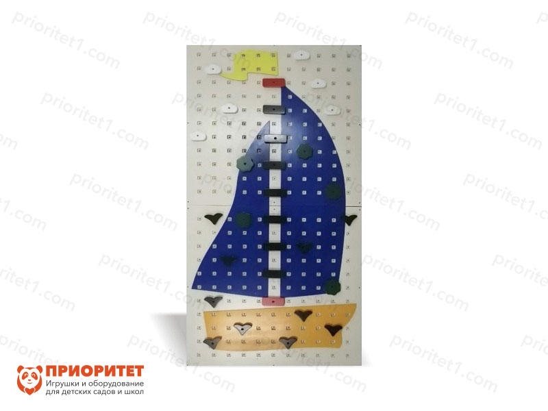 Модель скалодрома «Смелый кораблик» состоит из двух фанерных панелей и зацепов разной формы и цветов. Изделие прочное, не имеет опасных острых или режущих элементов.