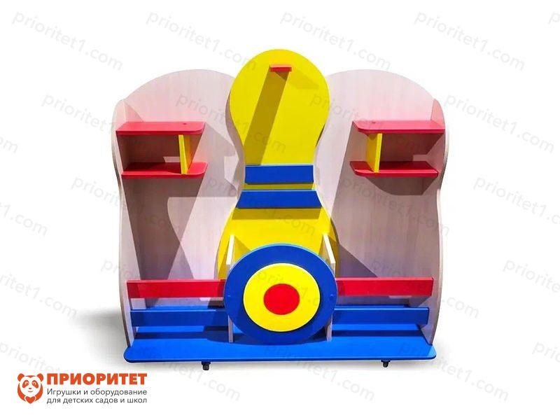 - Уголок имеет уникальный дизайн «Кегля»: есть рисунок кегли на корпусе и мишень, куда можно кидать мячи. Выкрашен в яркие краски, которые поднимают настроение малышам.