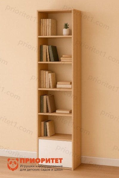 Стеллаж «Линия» — универсальное решение для современного офиса, учебного класса, библиотеки или кабинета преподавателя. Лаконичный дизайн, чёткие линии и натуральный оттенок делают модель гармоничным элементом любой интерьерной композиции. Нижняя полка оснащена системой push-to-open, благодаря чему дверца открывается лёгким нажатием — без ручек и лишних деталей.