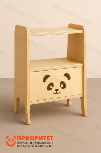 - 2 открытые секции: Верхняя — для быстрых доступных предметов, Нижняя — с декоративной спинкой, оформленной вырезом мордочки панды;