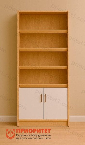 Этот стеллаж с наклонными полками создан специально для библиотек, школьных классов и других образовательных учреждений, где важно не просто хранение книг, а их наглядная подача. Наклонные полки позволяют сразу увидеть обложку каждой книги, что делает процесс выбора интереснее и удобнее для детей и взрослых. Нижний шкафчик закрытого типа идеально подходит для хранения методических материалов, канцелярии или дополнительных пособий.