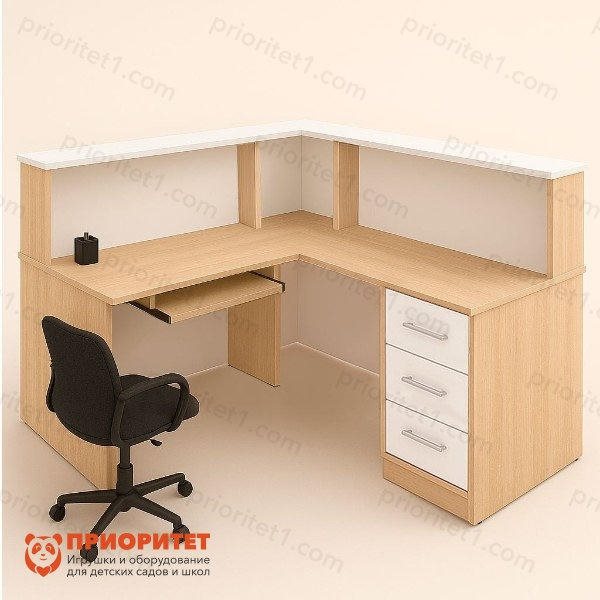 Стол-кафедра выдачи литературы — это современное и эргономичное решение для организации зоны обслуживания посетителей в библиотеке, медиатеке, читальном зале или учебном центре. Конструкция выполнена в форме буквы «Г», что обеспечивает удобное размещение рабочего оборудования, каталогов и литературы. Такой стол для библиотекаря сочетает в себе практичность, стиль и долговечность, помогая организовать процесс выдачи и приёма книг максимально комфортно.