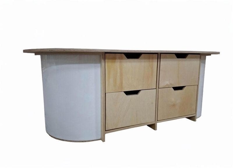 Стол с системой хранения из серии «Медовая» — овальный стол для ДОУ и начальной школы, который объединяет рабочую поверхность и встроенное хранение. Решение подходит для занятий, творчества и групповой работы: материалы всегда рядом, а пространство в группе остаётся аккуратным. Изделие выполнено в стилистике коллекции «Медовая».