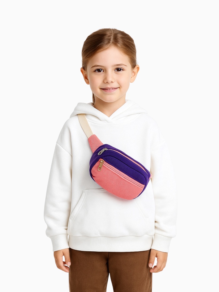 Сумка детская поясная на молнии, наружный карман, цвет розовый/фиолетовый