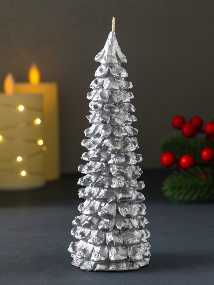 Свеча новогодняя «Ель большая», 160×60 мм лак, серебро