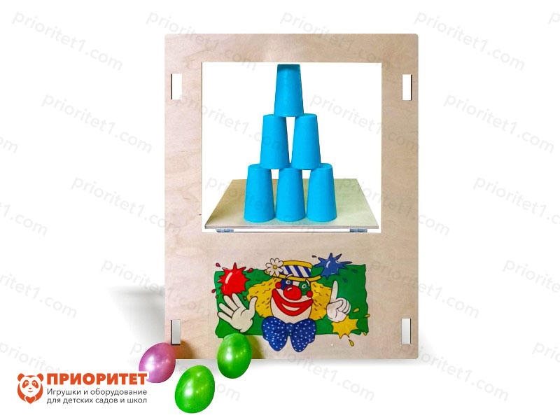 - В нижней части панели нанесено изображение клоуна, что привлекает внимание ребенка и задает положительный настрой игры.