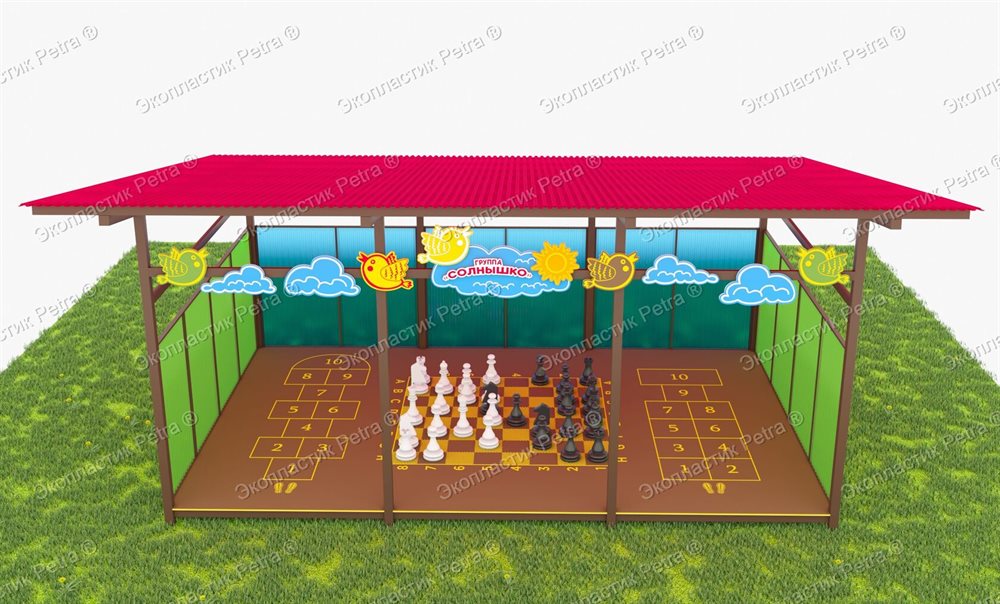 Теневой навес с интерактивным полом и декоративными элементами из Экопластика Petra 6000*4000 мм (24 кв.м) в Чите