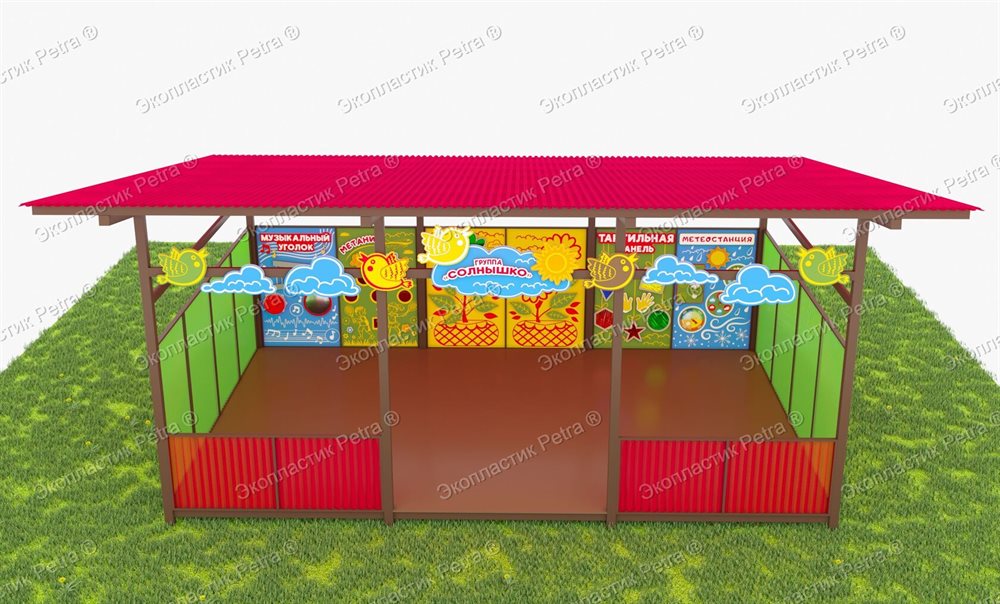 Теневой навес с интерактивными модулями и элементами из Экопластика Petra (с бортиком) 8000*4000 мм (32 кв.м) в Чите