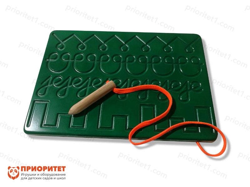 На тренажере представлены основные элементы, которые пригодятся в письме. Полностью освоив доску ребенок с легкостью приступит к настоящему письму. Тренажер станет незаменим в детском саду, развивающем и реабилитационном центре, а также для занятий дома. Предназначен для индивидуальных занятий.