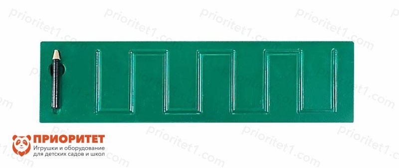 - Представляет собой горизонтальную панель с резными путями и дополнительным стилусом. Задача ребенка – провести стилусом по резному пути. В процессе игры малыш должен научиться делать это непрерывно и повторять зигзаг на бумаге, доске и прочих поверхностях.