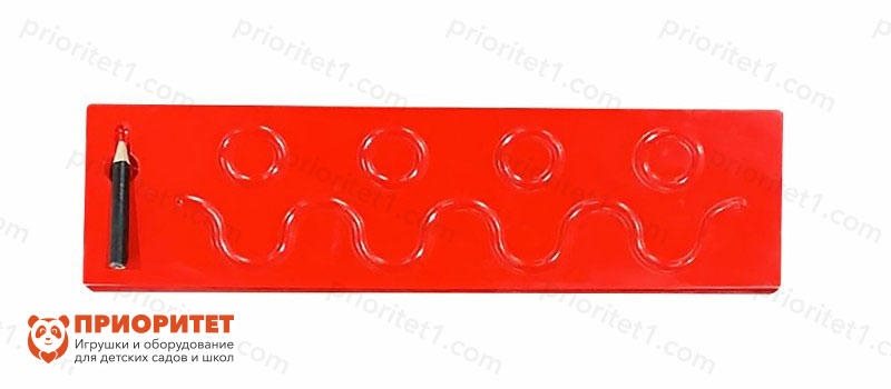 - Представляет собой вытянутую панель с резными путями и дополнительным стилусом. Задача малыша – провести стилусом по каждой детали резного пути. Навык считается освоенным, когда малыш проведет непрерывную линию и сможет повторить ее на бумаге фломастерами.