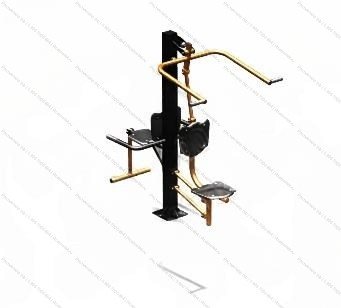 Тренажер представляет собой сборную конструкцию, состоящую из опорного столба проушин, в которые вставляется шарнирный механизм и крепится болтом. Ручка крепится через шарнирный механизм к силовой тяге, к ней же на другой конец крепится элемент сиденья, на него устанавливается спинка и сидушка. Также с другой стороны на опорную трубу установлен шарнирный механизм с тягойи устанавливается сиденье, закрепляется при помощи антивандальных болтов. |