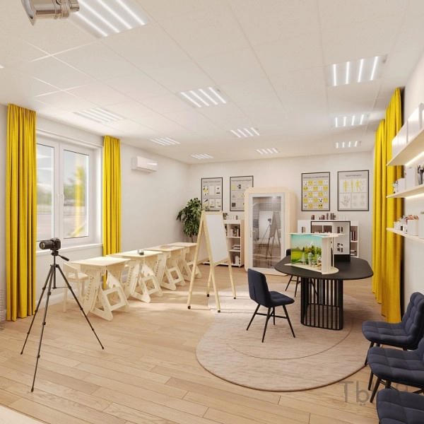 - Инспирирующая атмосфера: тщательно продуманное оформление, включая световое решение и зонирование, создаёт комфортную и мотивирующую среду, способствующую раскрытию творческого потенциала каждого участника.