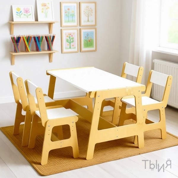 - Регулируемая высота стульев и стола - адаптируется под рост ребенка, обеспечивая правильную осанку.