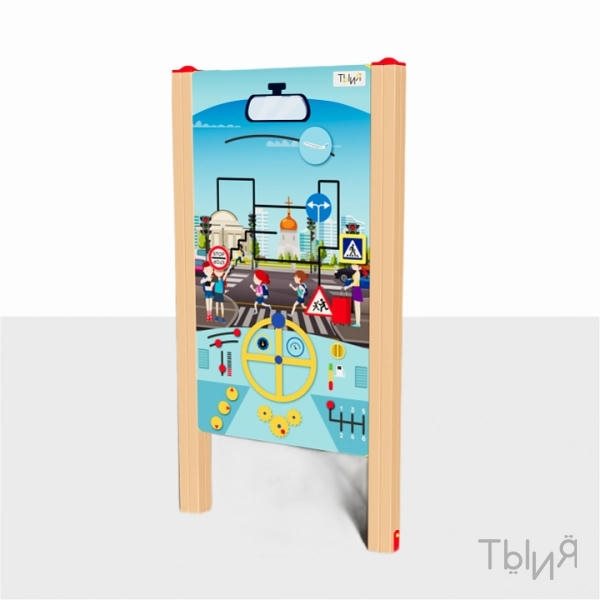 Уличный бизиборд помогает дошкольникам изучать правила дорожного движения в игровой форме. Подходит для детей 3–7 лет.