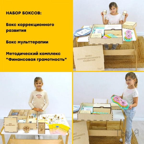 Комплект боксов для развития (мульттерапия, коррекция, финансовая грамотность) предназначен для педагогов, родителей и специалистов. Обеспечивает системное развитие когнитивных, творческих и социальных навыков у детей разных возрастов.