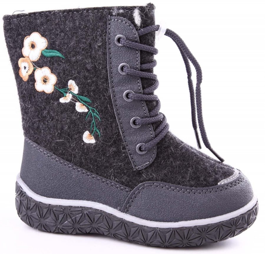 Валенки детские, размер 23-28, черные с принтом цветы, 9464A-3