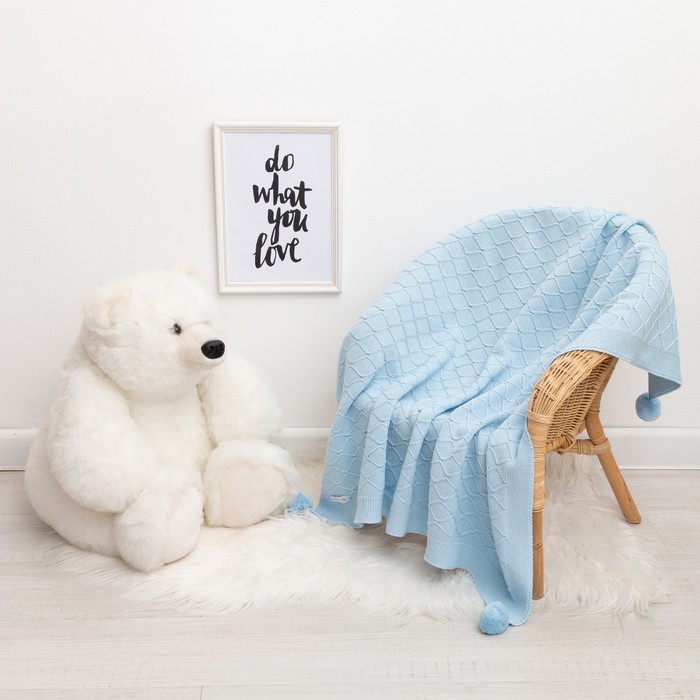 Вязаный плед Крошка Я Рисунок ромб, 90х90 см, цвет голубой